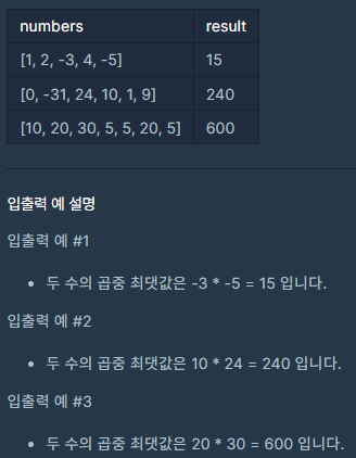 answer = Math.max(answer, numbers[i] * numbers[j]);