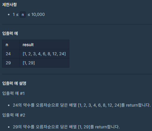 for (int i=1; i<=n; i++) { //List에 n의 약수를 구해 넣어준다