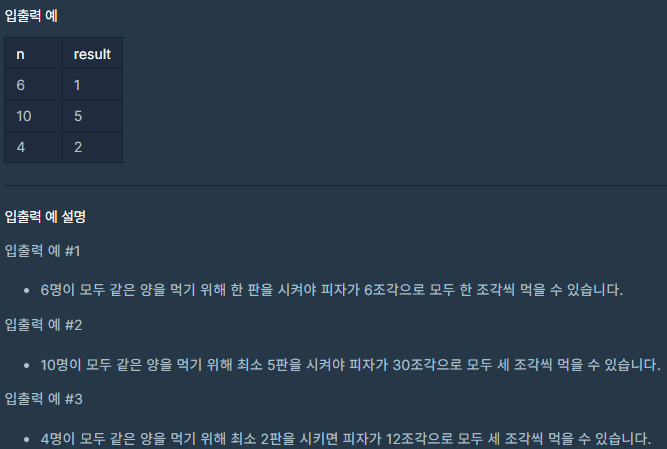 프로그래머스 피자 나눠먹기(2) 자바 본문