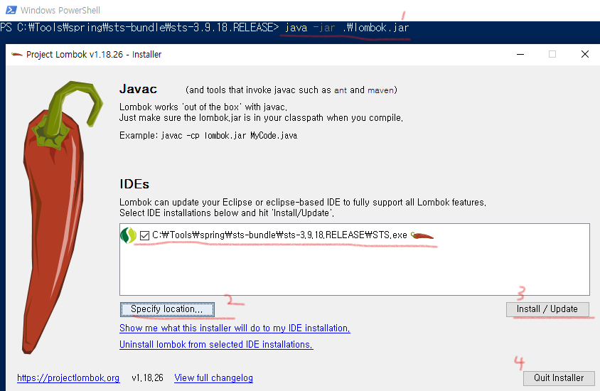 cmd창,powershell창 lombok설치시 에러 error: could not open 해결방법 및 lombok설치 본문