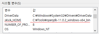 2. jdk 재설치 해서 시스템 환경변수 설정에 JAVA_HOME 새로 만들기(jdk경로는 새로 설치한 jdk경로로 설정)