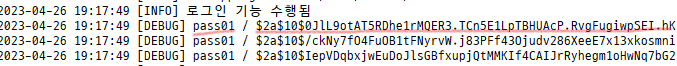 log.debug(inputMember.getMemberPw() + " / " + bcrypt.encode(inputMember.getMemberPw()));