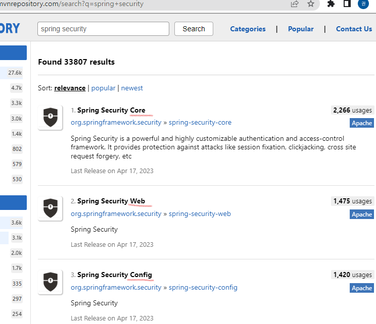 Maven Repository 홈페이지 접속해 필요한 라이브러리를 pom.xml <dependencies>안에 추가해준다