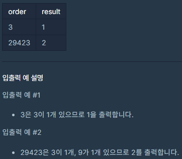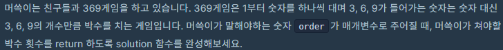 for(int i=0; i<orderSt.length(); i++) { //String 각각 하나씩 3, 6, 9랑 일치여부 확인