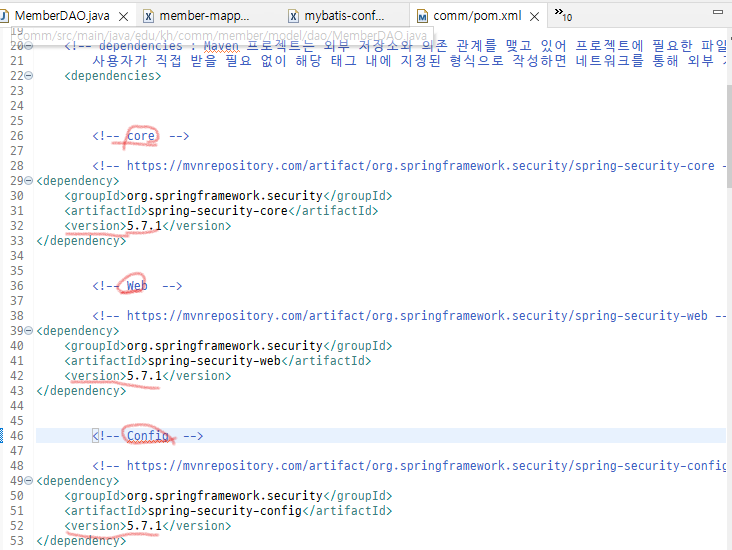 dependencies :Maven 프로젝트는 외부 저장소와 의존관계를 맺고 있어 프로젝트에 필요한
