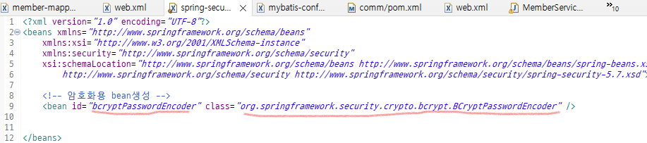 -spring-security.xml 생성 후 암호화용 bean 생성 해준다