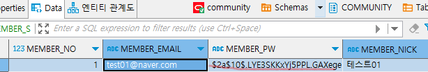 //전달 받은 비밀번호를 암호화 하여 DB에서 조회한 비밀번호화 비교(DB에서 비교X)