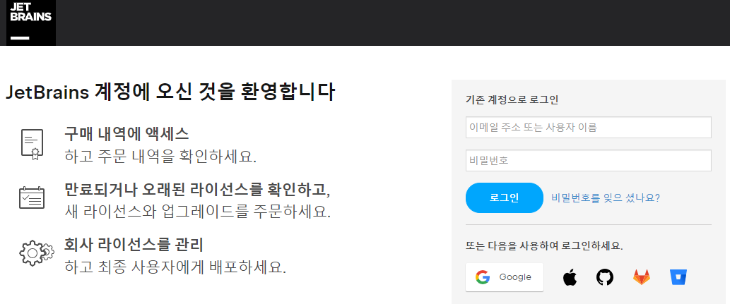 5. 링크로 들어간 후 인증이 완료되면 JetBrains 홈페이지에 인증받은 대학 메일로 로그인 해줍니다.