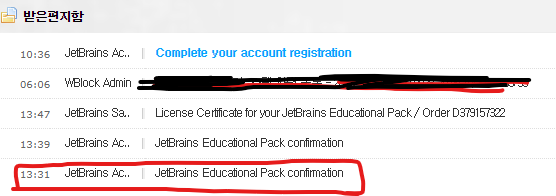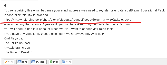 4.신청해주면 적어 놓은 이메일 주소로 아래 이미지처럼 JetBrains로 부터 메일이 하나 전송될 겁니다.