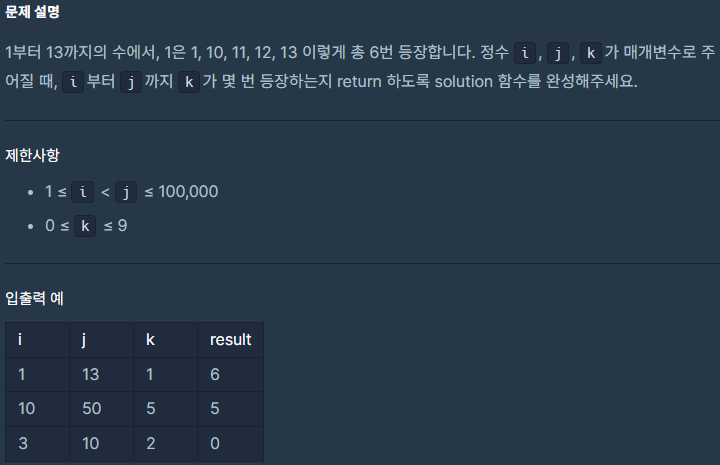 프로그래머스 k의 개수(자바) 본문