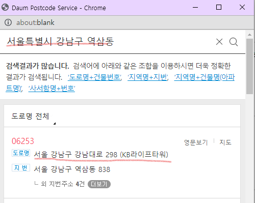 우편번호 검색과 도로명 주소 입력 기능을 너무 간단하게 적용할 수 있는 방법. Daum 우편번호 서비스를 이용해보세요. 어느 사이트에서나 무료로 제약없이 사용 가능하답니다.