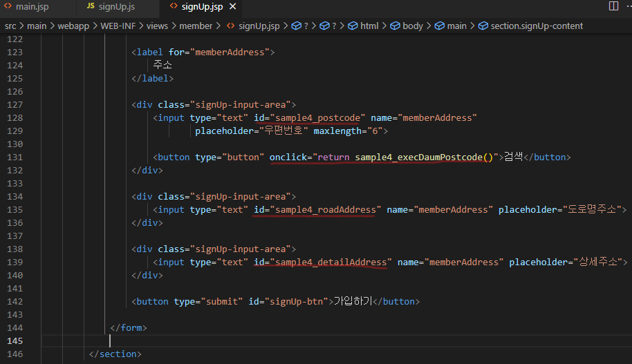 0426spring 회원가입시 주소검색 가능하게 만들기 본문