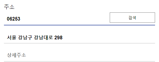 우편번호 서비스 페이지를 참고해 주소 검색이 가능하게 끔 만들어봤습니다