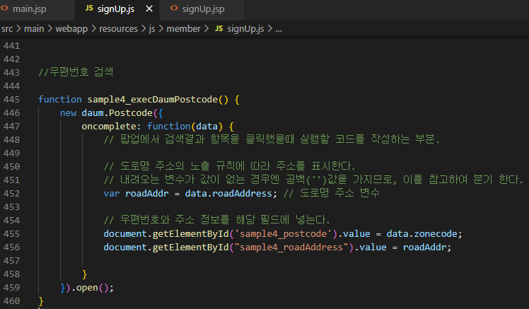 0426spring 회원가입시 주소검색 가능하게 만들기 본문