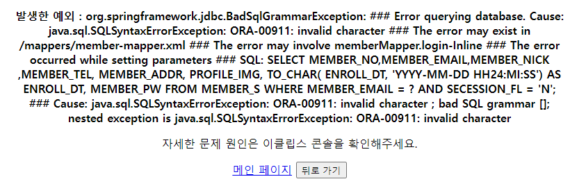 model.addAttribute("errorMassage", "서비스 이용 중 SQLException 발생");