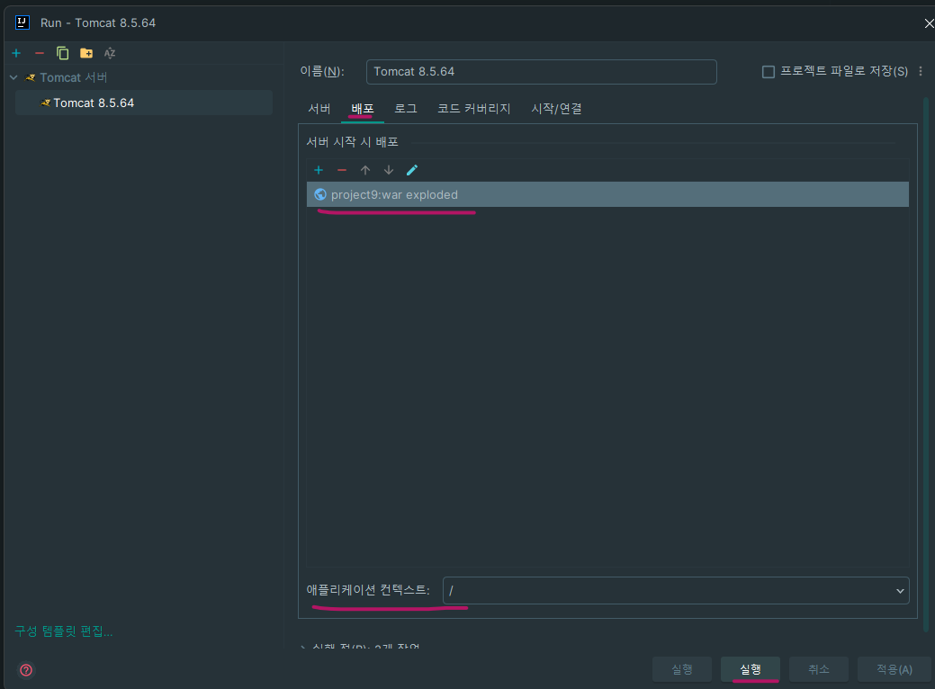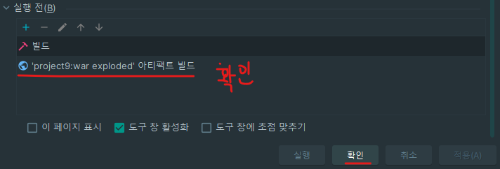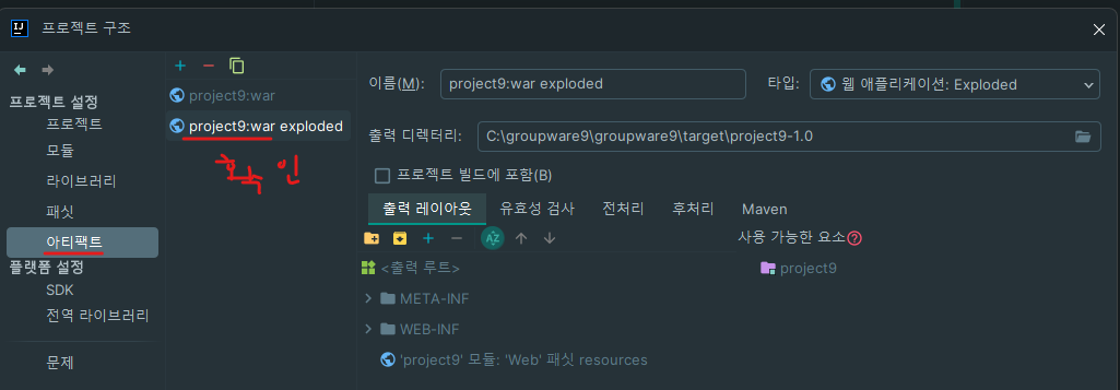 바로 위 화면에 war가 없을 시 아래 화면 처럼 추가해줘야 합니다.