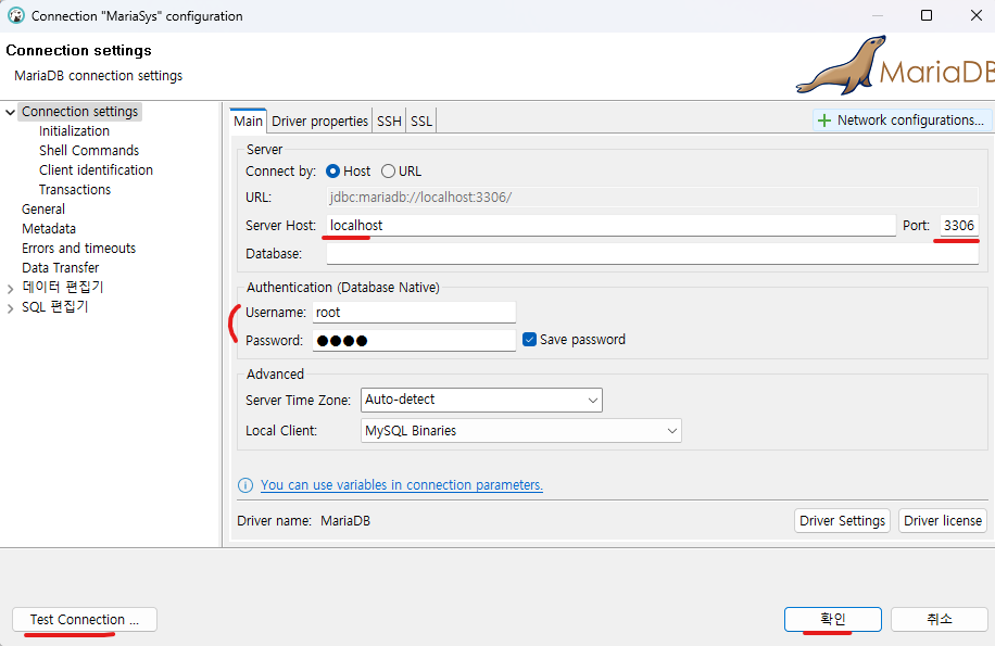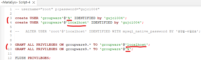 1. 유저 생성을 위한 Maria DB 관리자 계정으로 SYS DB 생성