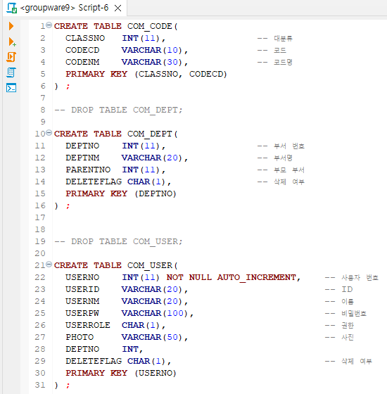 4.바로 위에서 생성한 DB에 테이블 생성 및 데이터 삽입