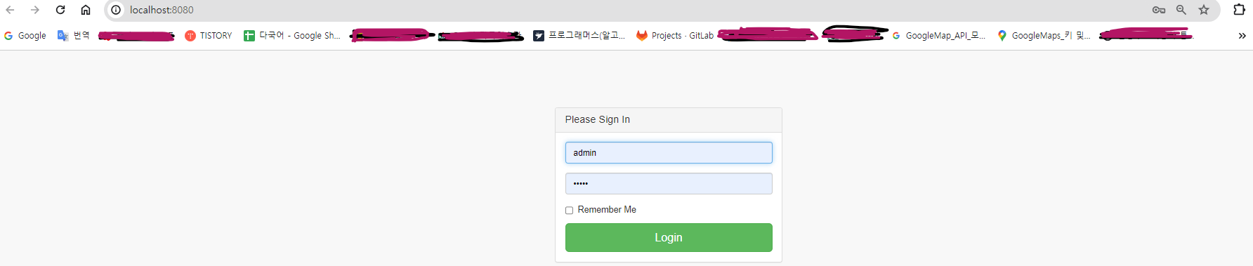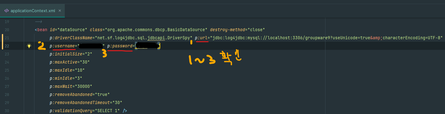 WEB-INF/template/applicationContext.xml에 있는 것과 같게 USER생성 및 권한 부여