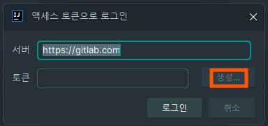 +버튼으로 계정 추가 시 토큰으로 로그인을 해줘야하는데 없으면 토큰옆에 생성 버튼 눌러 생성해주시면 됩니다.