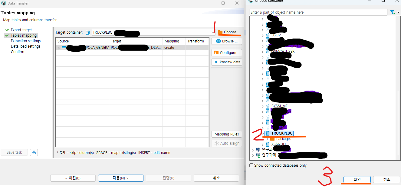 3. Choose를 클릭해 데이터 이관할 테이블을 DB상 경로에서 이미지와 같이 설정해준다.