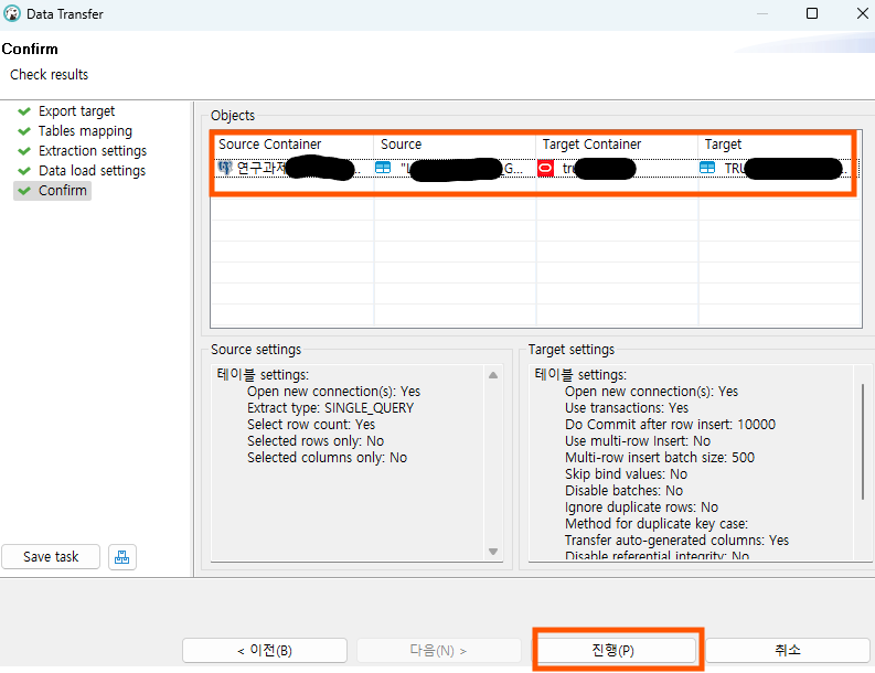 4. Source Container == 데이터를 옮길 DB(데이터가 있는 DB) ,
