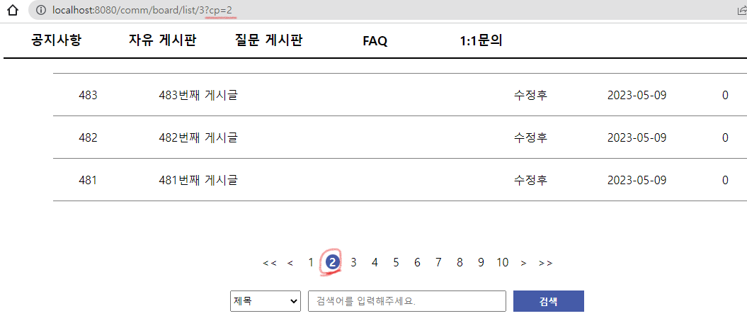 0501spring 게시판(1) 글 조회 (pagination(페이지번호) 포함) 본문