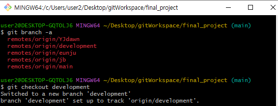 user2@DESKTOP-GQTOLJ6 MINGW64 ~/Desktop/gitWorkspace/final_project (development)