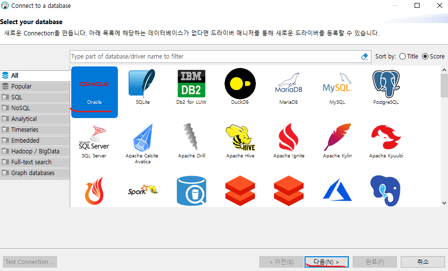 전 ORACLE 데이터베이스를 사용해와서 ORACLE을 선택하였습니다