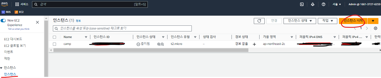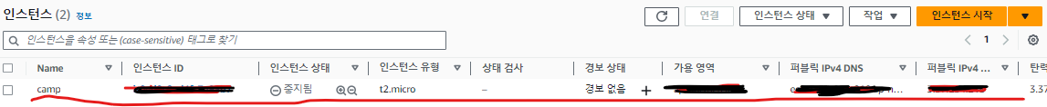 위에서 ec2인스턴스를 생성하셨으니 입력란에 인스턴스 선택이라고 표시될 겁니다.