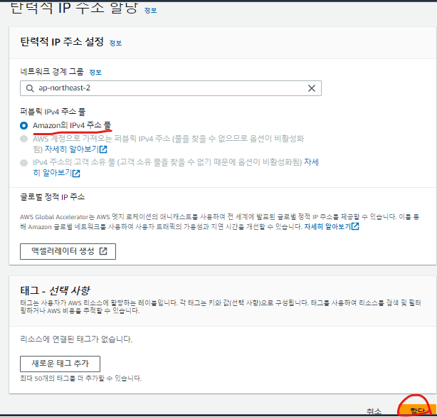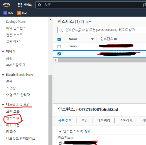 다음으로 탄력적 IP라는것을 생성하셔야 합니다.
