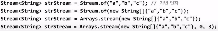 Stream<String> strStream = Stream.of(new String[] {"ab", "cde", "f"});