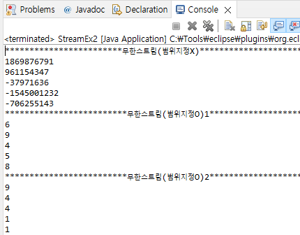 System.out.println("*************************무한스트림(범위지정O)1***************************");