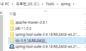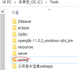 ->Tools폴더에 다운받은거 압축풀고 spring폴더만 Tools폴더에 따로 빼놓기