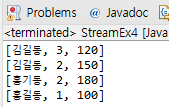 Stream<T> peek() : 작업 사이에 넣어 중간결과를 확인하고자 할때