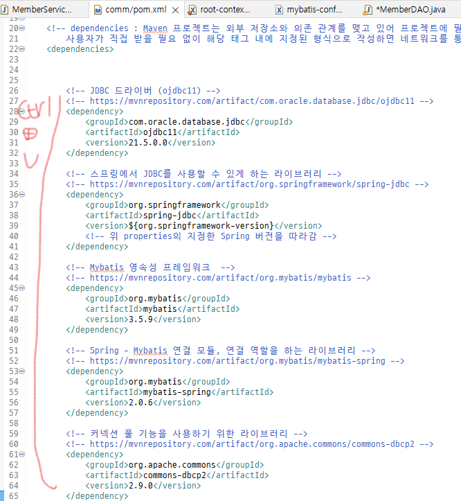 -> JDBC드라이버(ojdbc)는 JDBCTemplate을 따로 만들지 않고 pom.xml에 만들어준다
