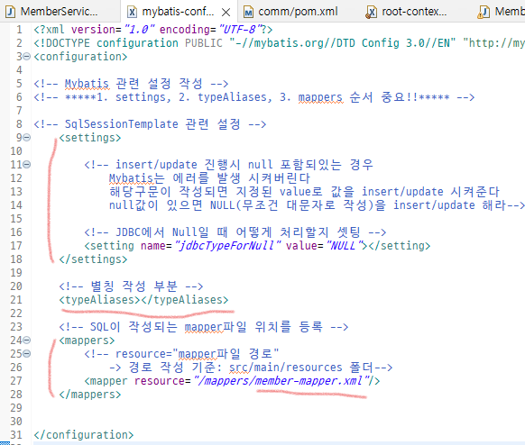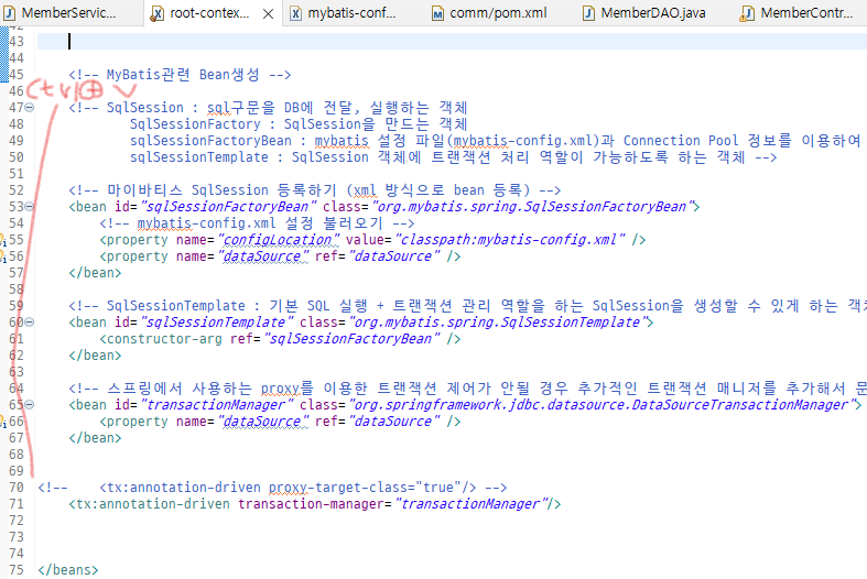 -> MyBatis관련된 bean설정은 root-context.xml에 만들어준다